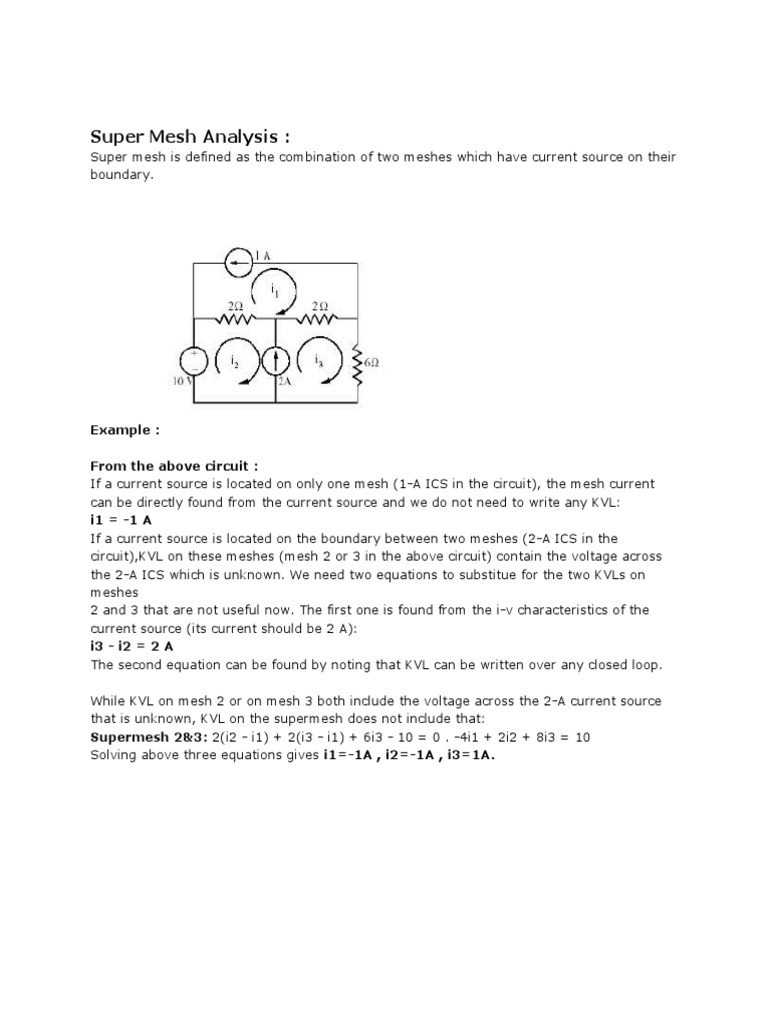 Super Mesh Analysis:: Example: From The Above Circuit | PDF ...