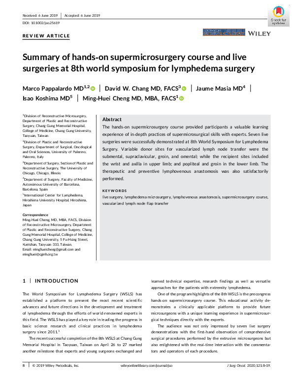 (PDF) Summary of hands‐on supermicrosurgery course and live surgeries ...