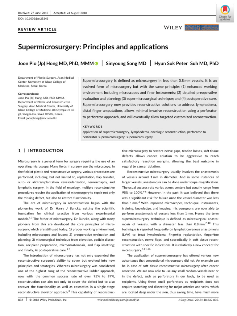 Supermicrosurgery: Principles and applications - Hong - 2018 - Journal ...