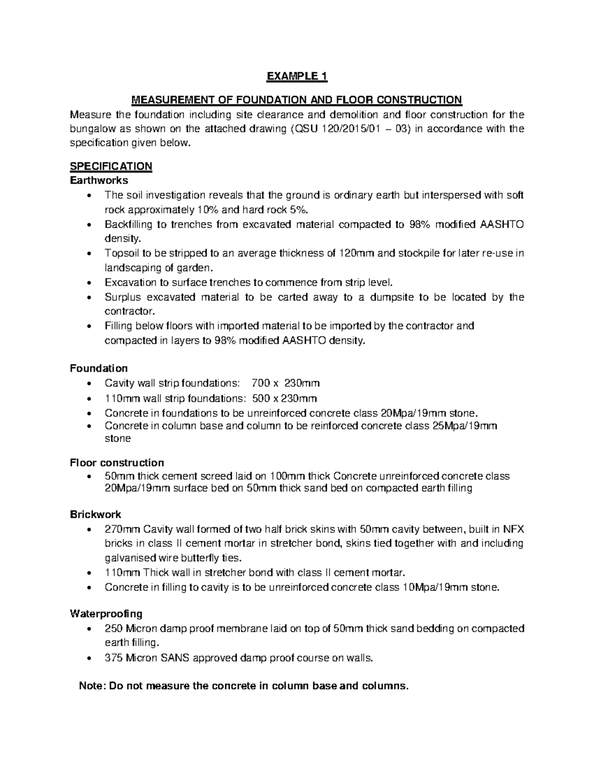 SOLUTION: Example 2 brief for measurement of foundation and ...