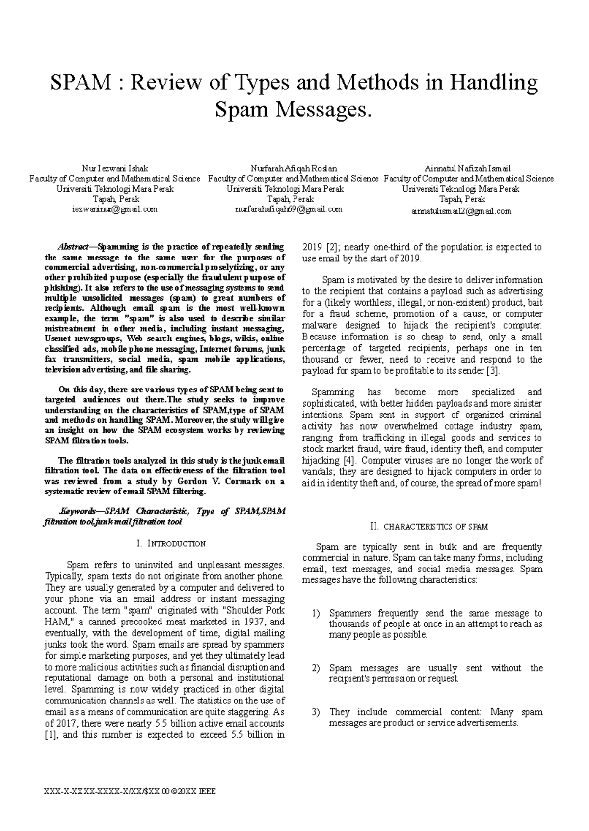 (PDF) Types and Methods of Managing SPAM Messages: A Review