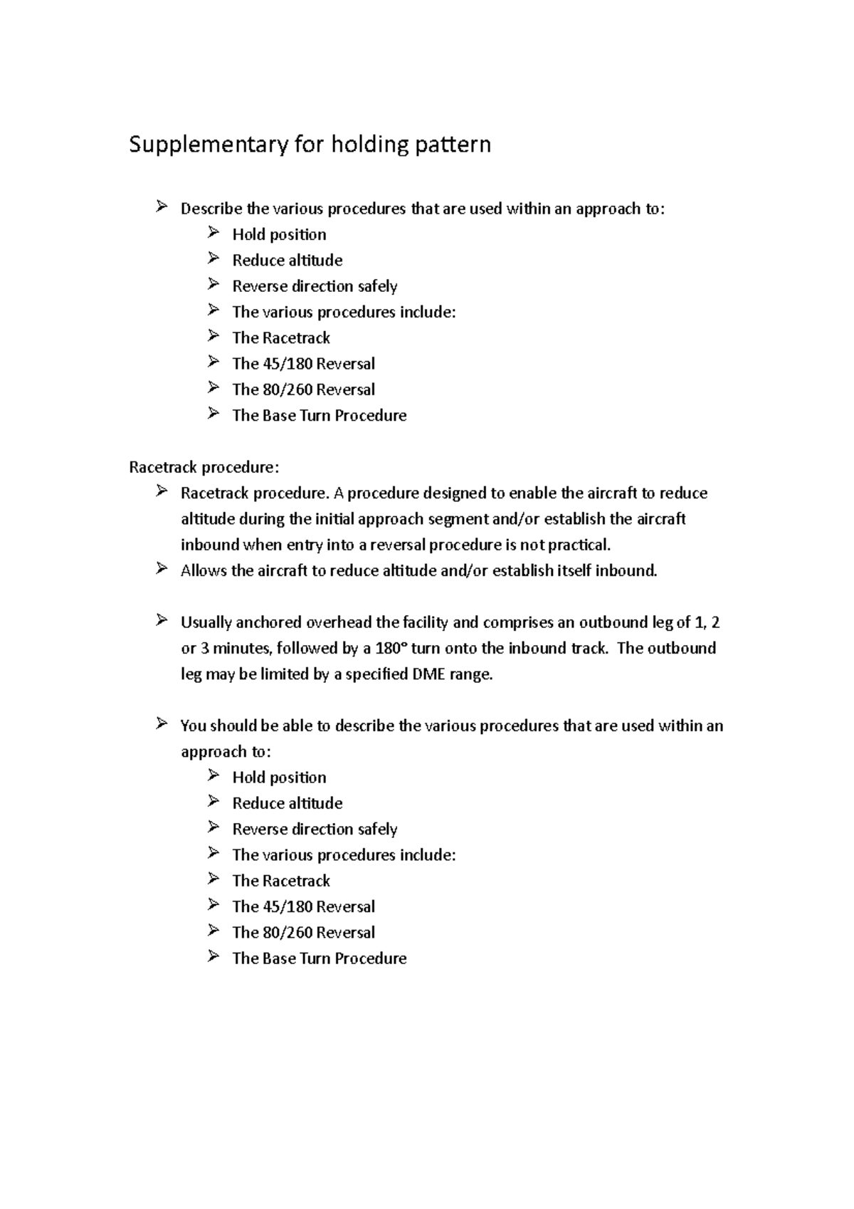 Supplementary for holding pattern - A procedure designed to enable the ...