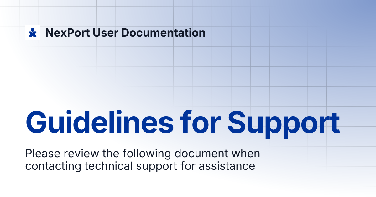 Guidelines for Support | NexPort User Documentation