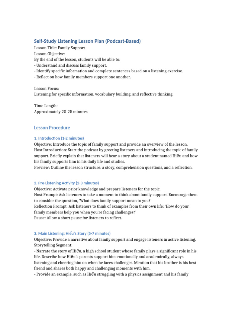 Family Support Listening Lesson Plan | PDF | Reading Comprehension ...