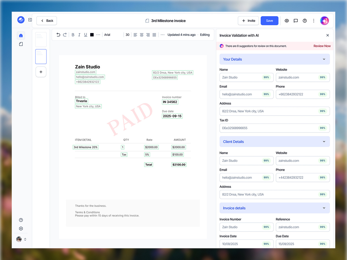 Contracly - AI invoice analysis page by Zainstudio on Muzli