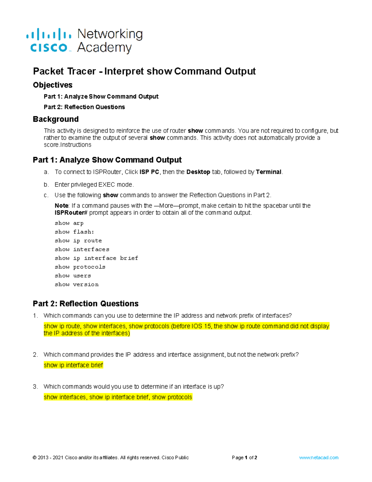 Cisco IOS Show Commands. beginning show commands, CCNA 1 Configuring ...