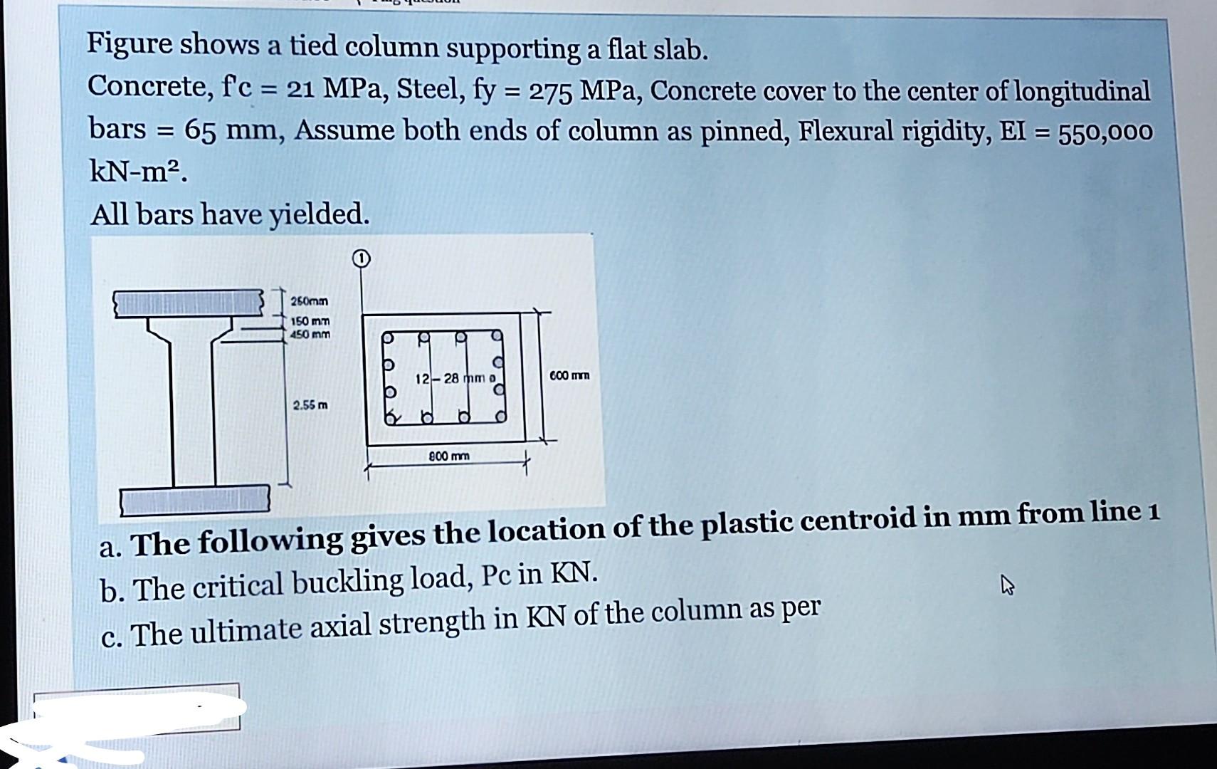 Solved = = Figure shows a tied column supporting a flat | Chegg.com