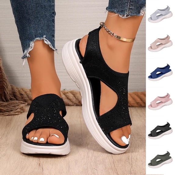 BRGZLK Mesh Rhinestone Thick Sole Sandals For Women Summer Open Toe ...
