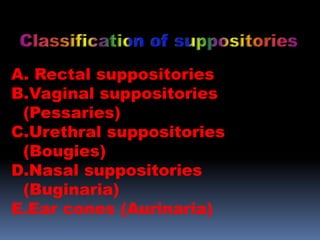 SUPPOSITORIES , VAGINAL, RECTAL, NASAL, EAR, | PPTX