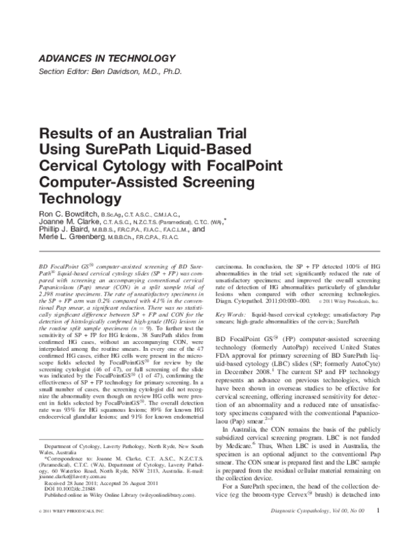 (PDF) Results of an Australian trial using SurePath liquid‐based ...