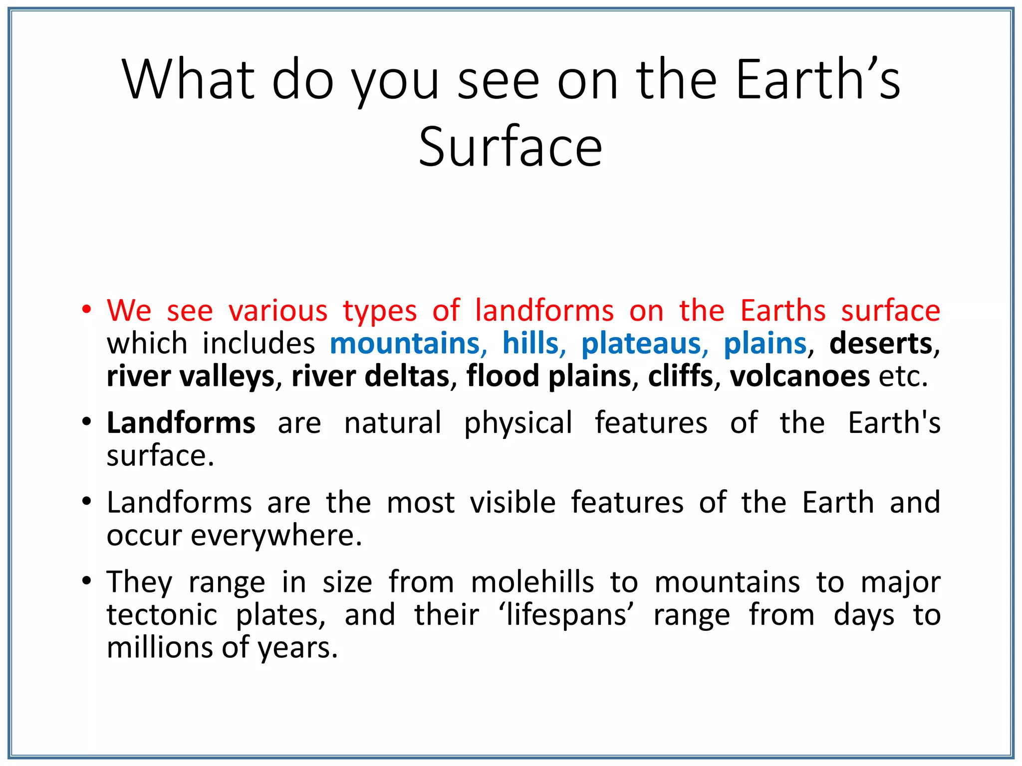Earth's surface.ppt Layers of earth. Landforms | PDF