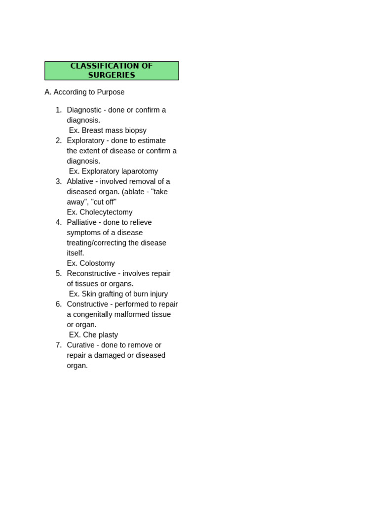 What Are The Four Categories Of Surgical Procedures Quizlet at George ...