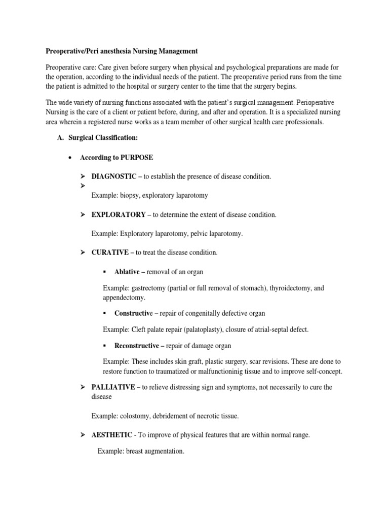 PERIOPERATIVE NURSING.pptx - Classification of surgery The ...