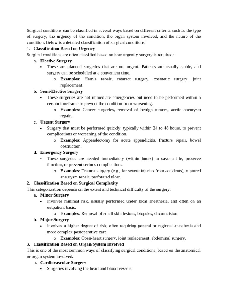 Classification of Surgical Conditions | PDF | Surgery | Clinical Medicine