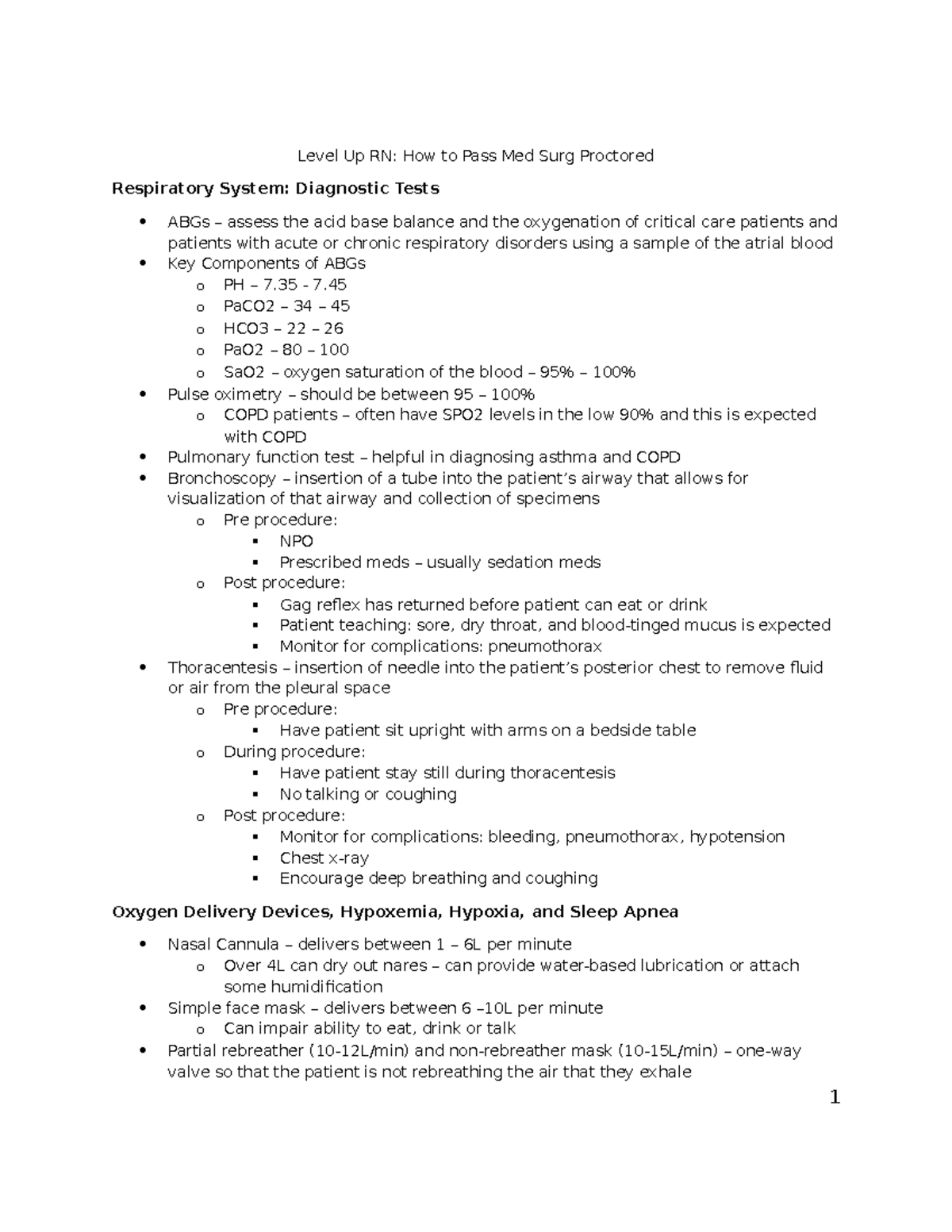 Level Up RN: Med Surg Proctored Exam Study Guide on Respiratory System ...