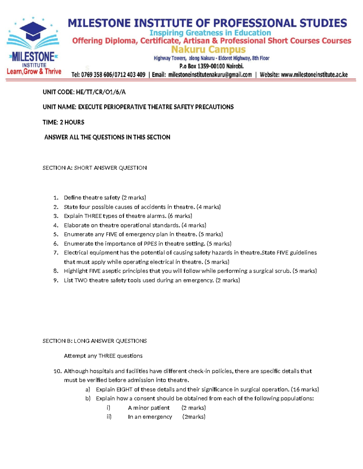 Execute Level 6 - Perioperative Theatre Safety Precautions Notes - Studocu