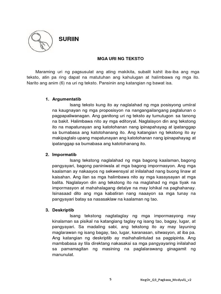 Suriin: Mga Uri NG Teksto | PDF