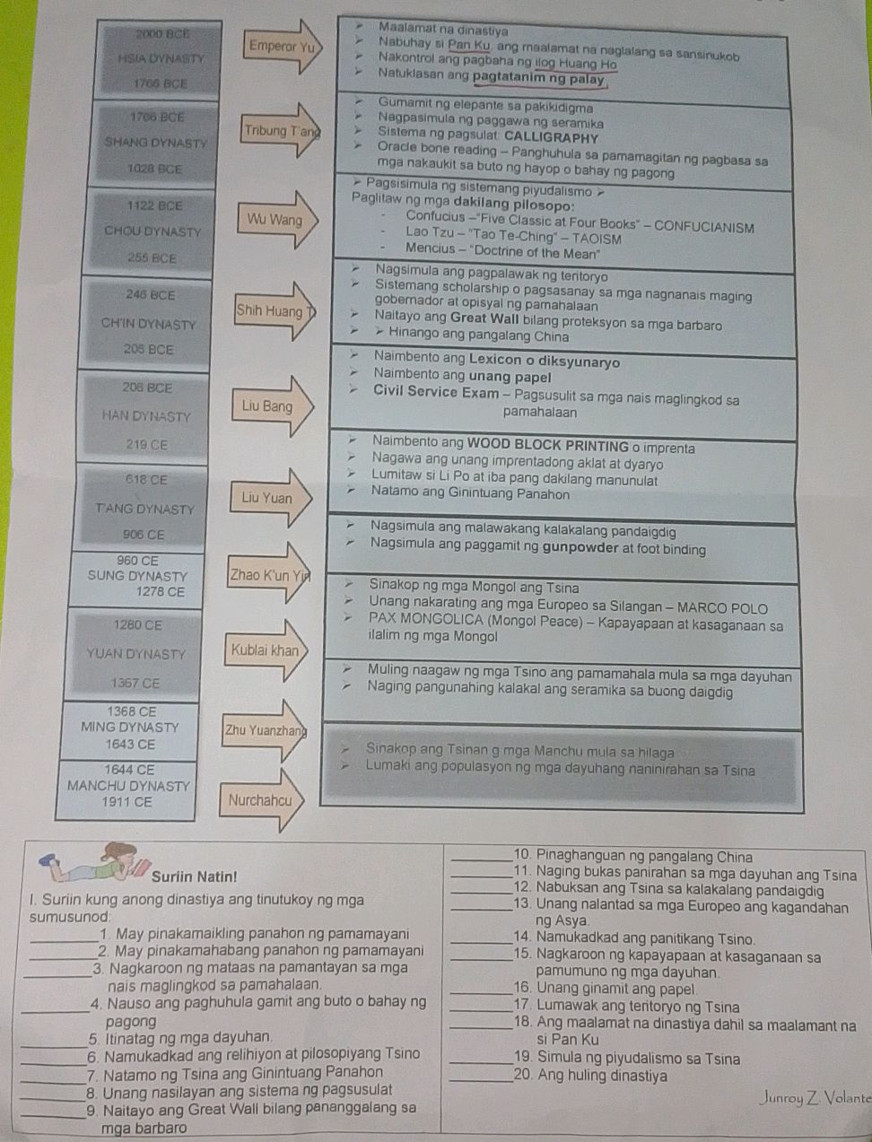 Suriin Natin! 1. Suriin kung anong dinastiya | StudyX