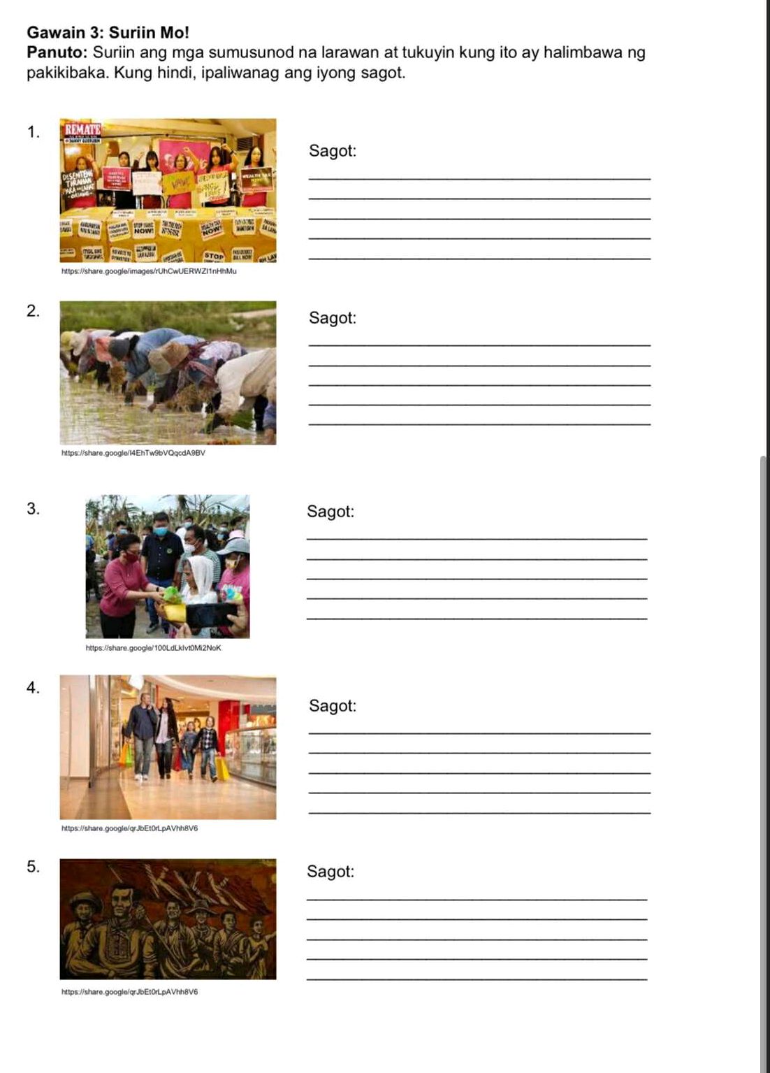 Suriin Panuto: Pagmasdan ang mga larawan at sagutin ang mga sumusunod ...