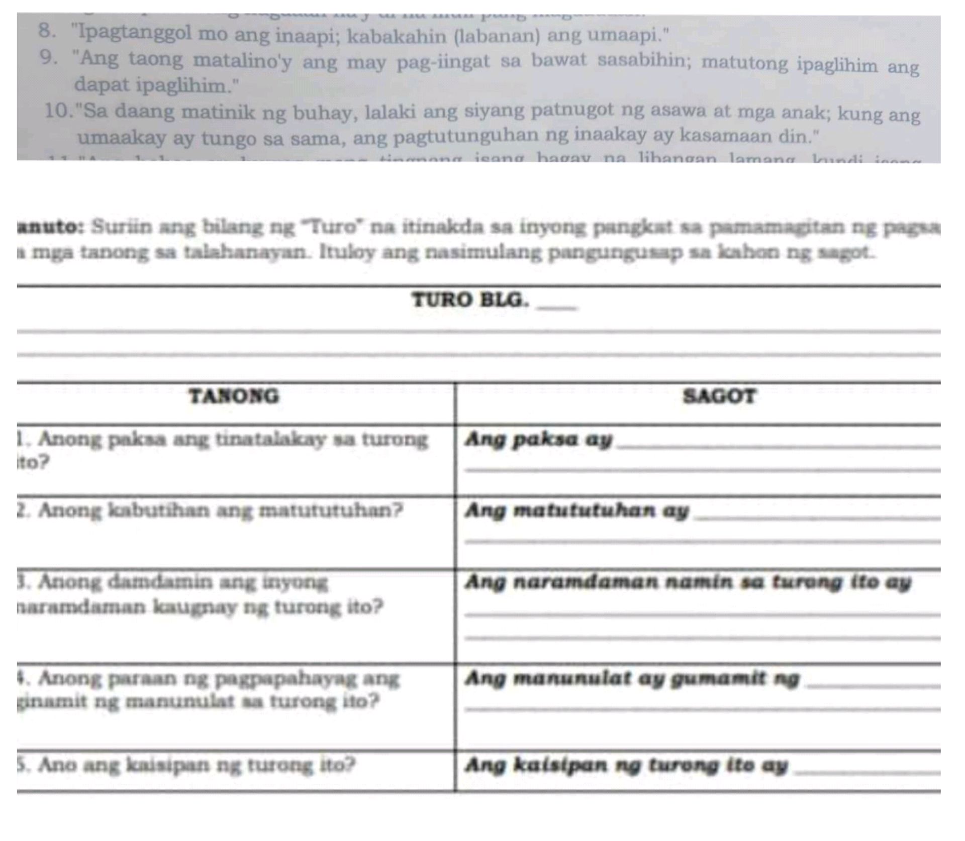 suriin ang halimbawang tula sa ibaba at sagutan ang mga katanungang ...