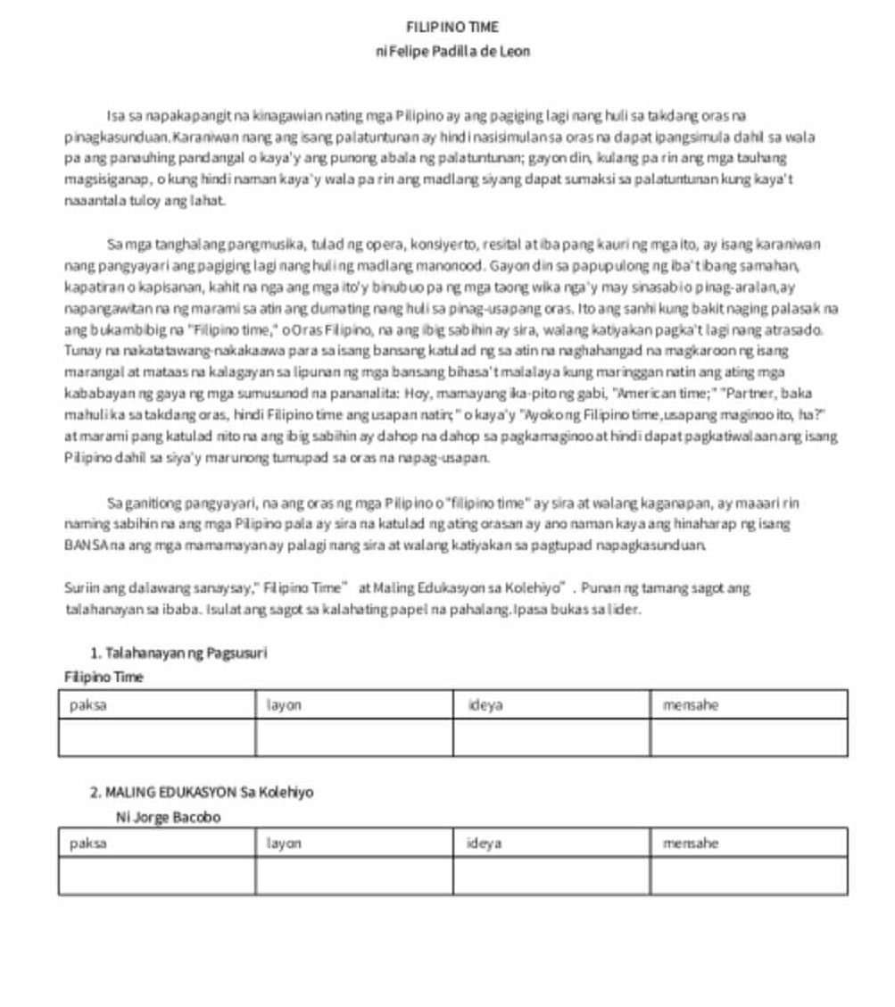 Suriin ang dalawang sanaysay," Filipino | StudyX