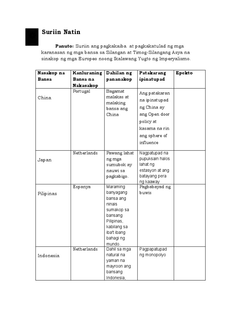 Module 3 Q3 - Araling Panlipunan 10 Pangalan: Petsa: Iskor: Gawain 1 ...