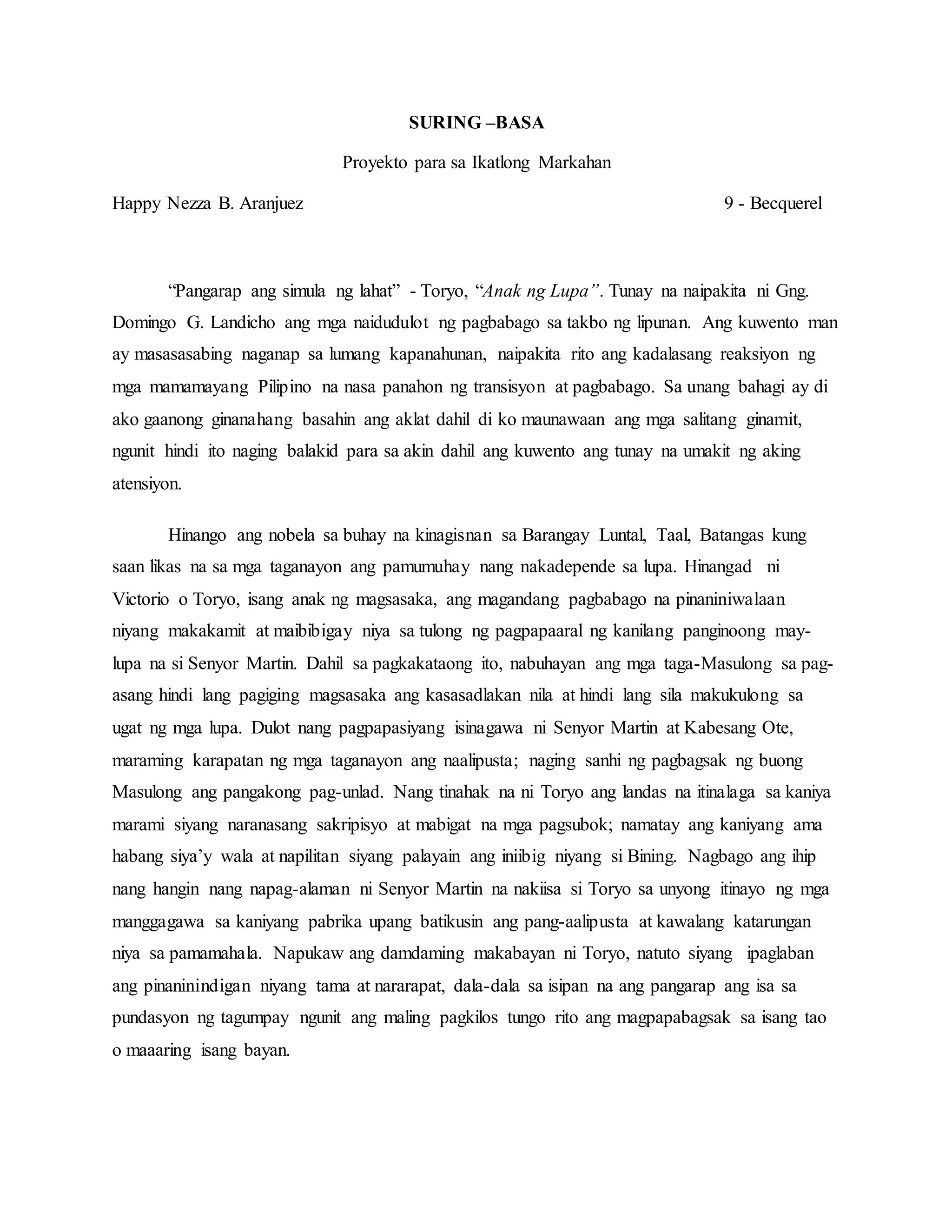 Suring basa ng "Anak ng Lupa" | DOCX
