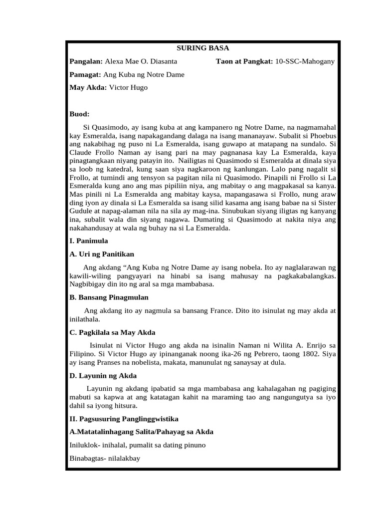 Halimbawa Ng Suring Basa Na Nobela - talakayan basa