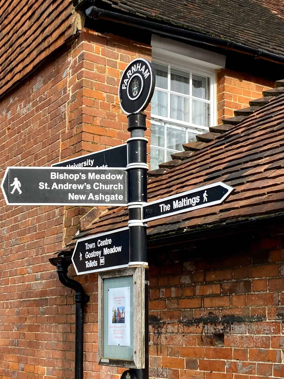 Signpost Giving Directions, Farnham Town Hall, Farnham, Surrey, England ...