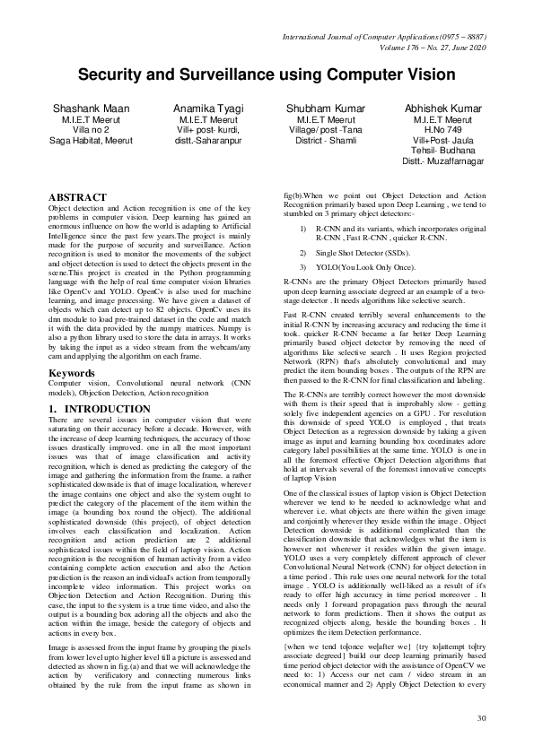 Smart Surveillance Using Computer Vision | PDF | Computer Vision ...