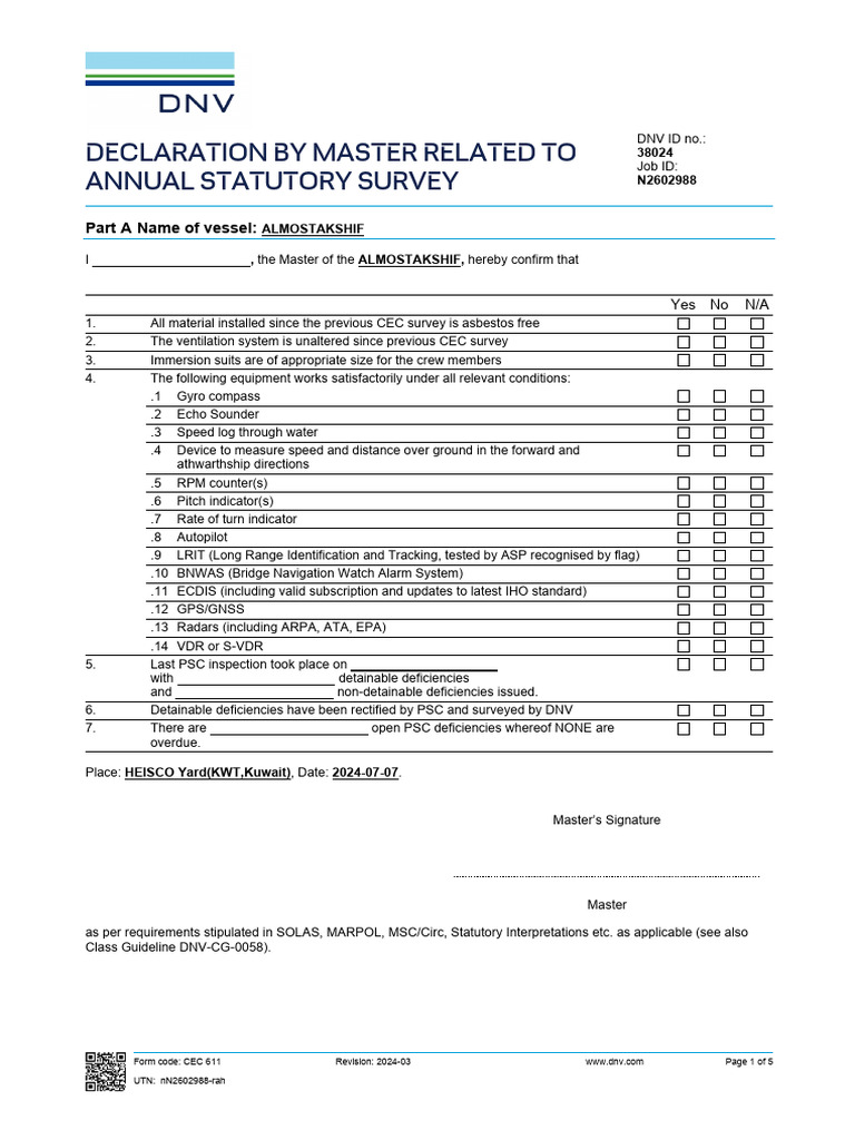 Declaration by Master at Periodical Statutory Survey-1 | PDF