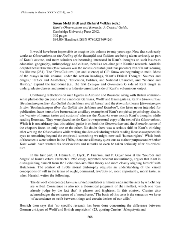 (PDF) Susan Meld Shell and Richard Velkley, eds. , Kant’s Observations ...