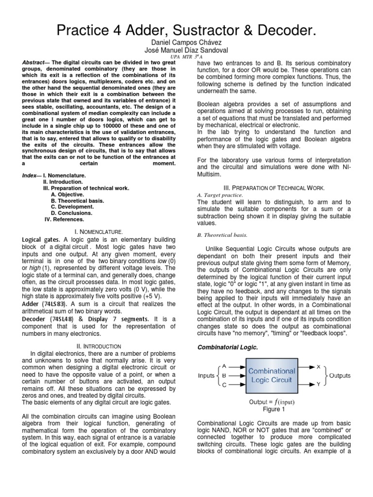 Practice4 (Adder & Sustractor | PDF | Logic Gate | Electronic Circuits