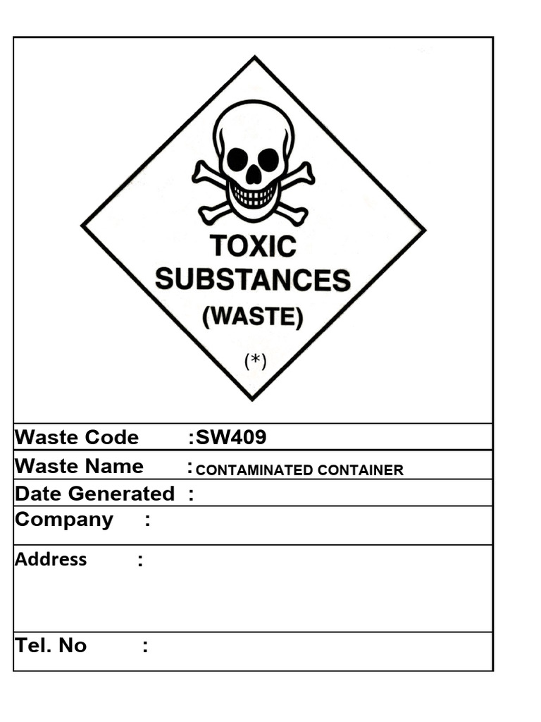 Scheduled Waste Labels - (THE ENVIRONMENTAL SPECIALIST WITH MS ISO 9001 ...