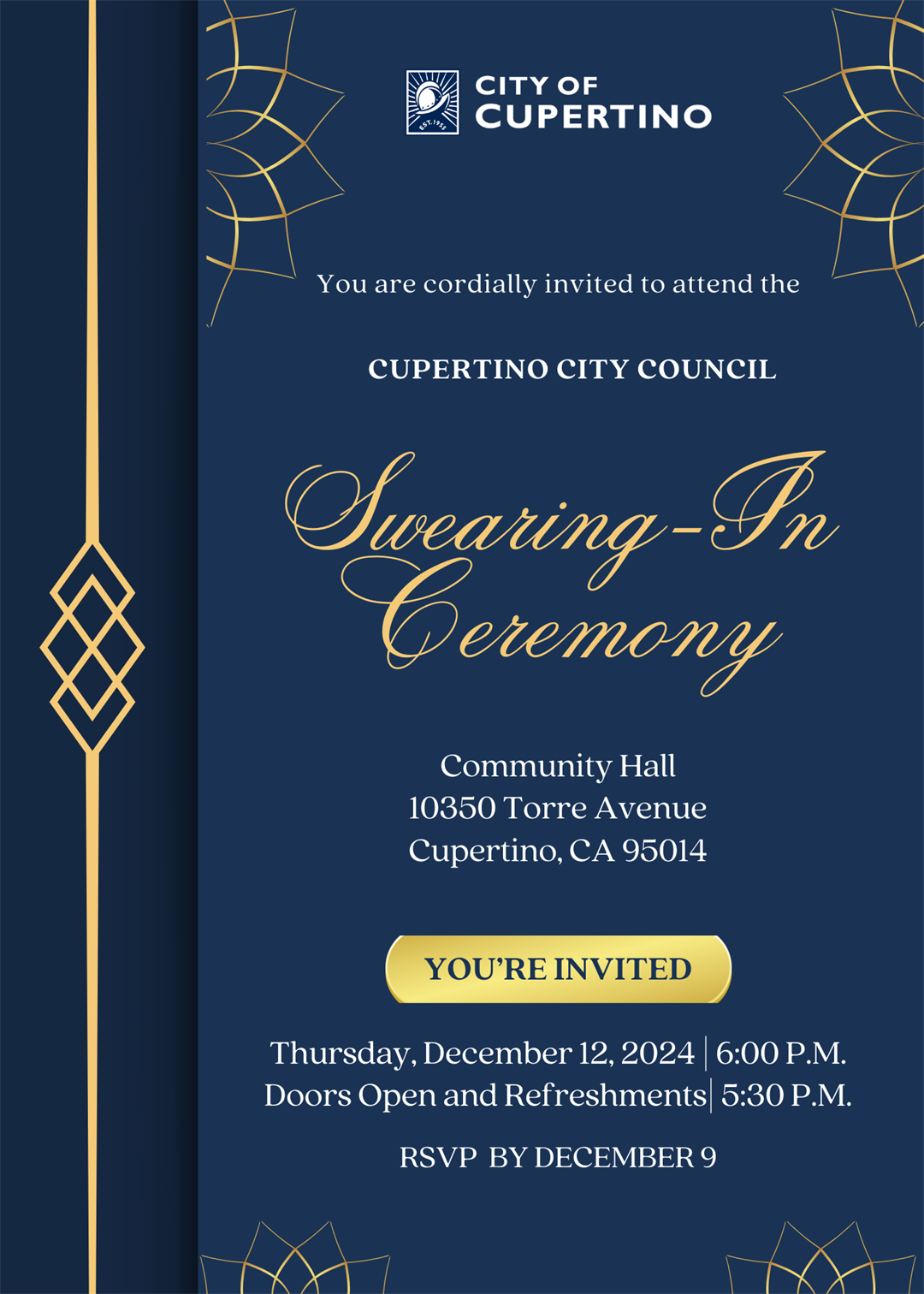 You Are Invited: Cupertino City Council Swearing-In Ceremony