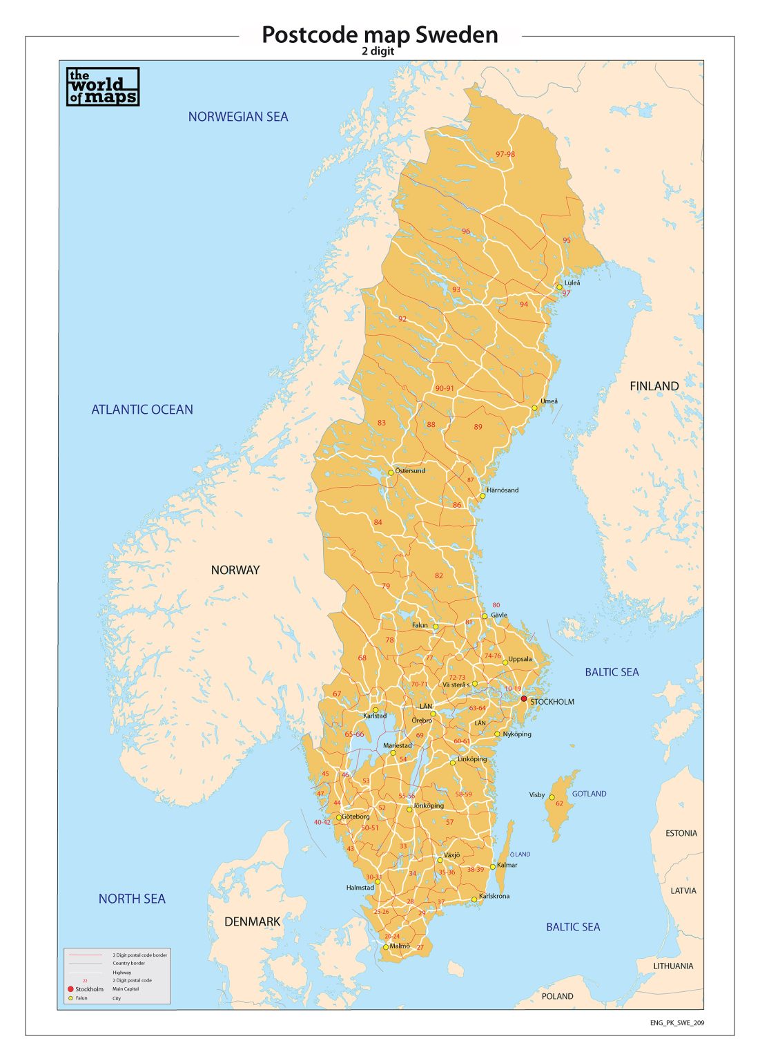 Sweden postcode map - Map of Sweden postcode (Northern Europe - Europe)
