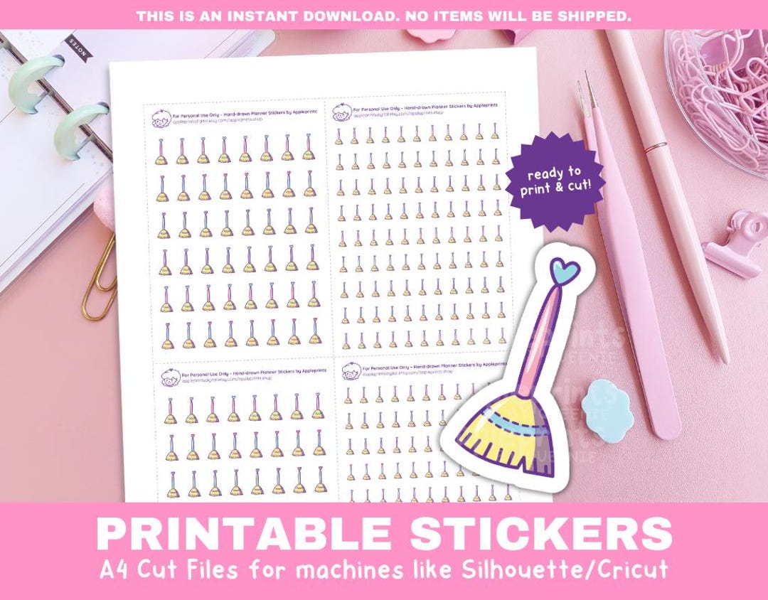 Broom Icon Stickers | Sweeping Planner Stickers | Printable Functional ...