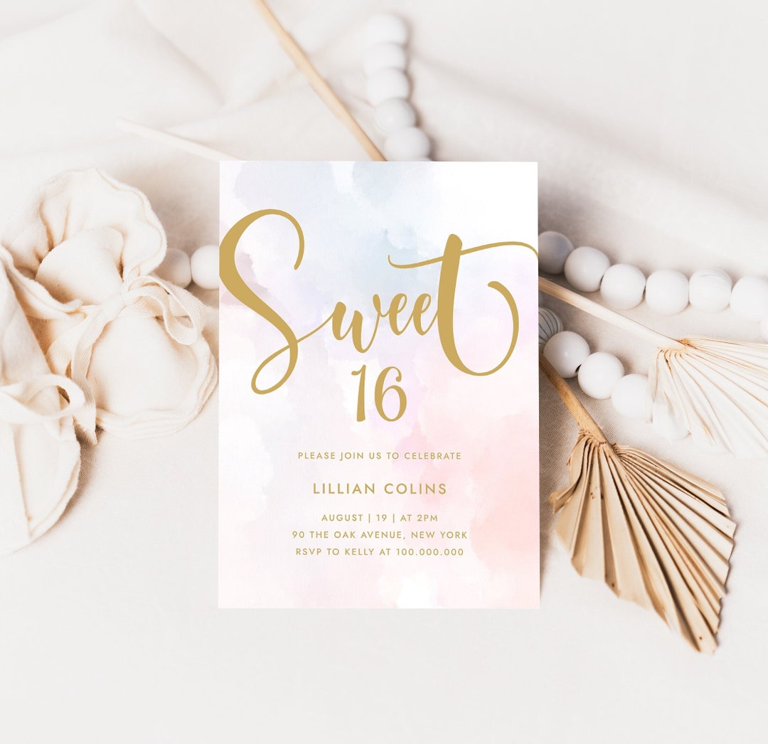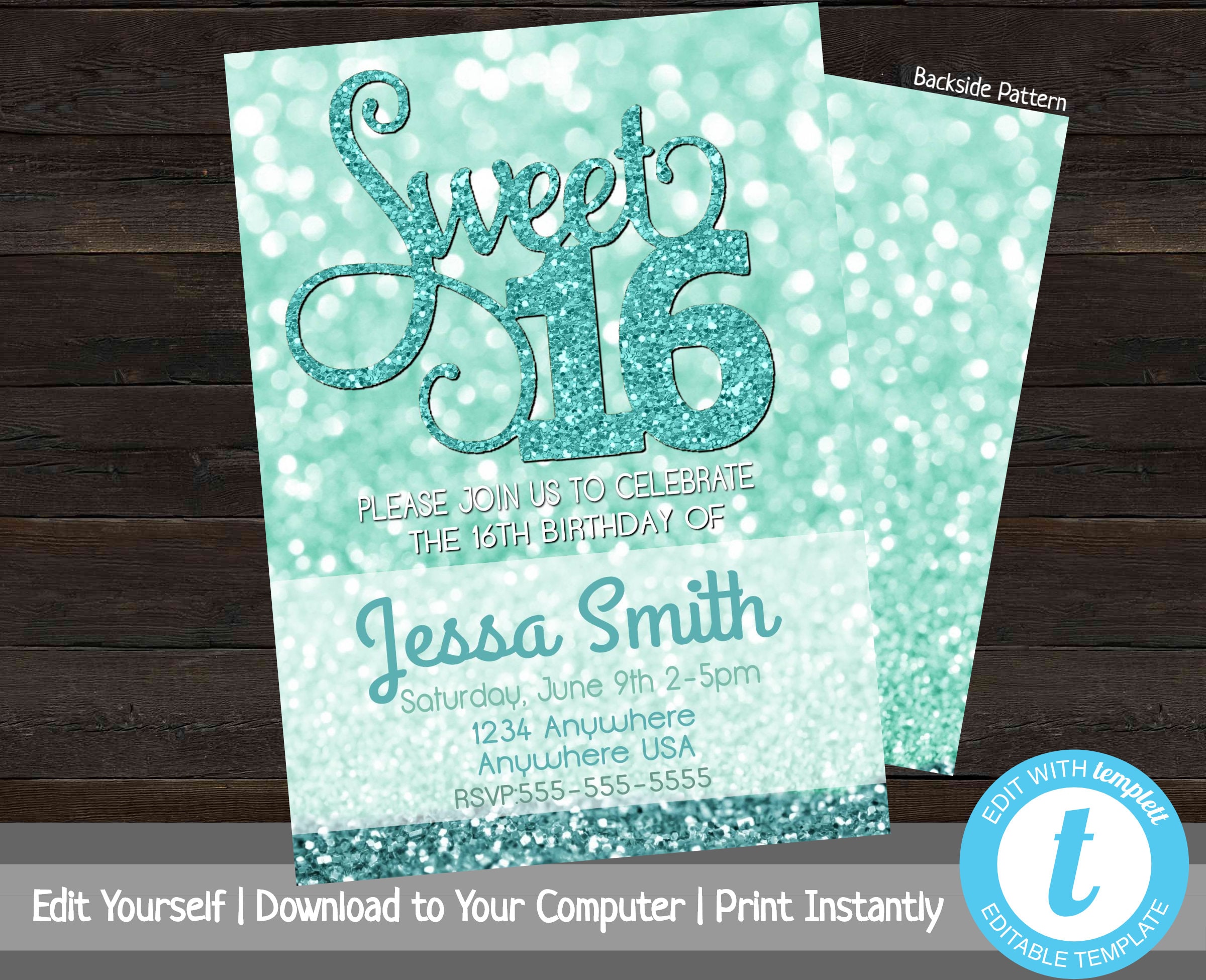 Sweet 16 Party Invitation Template, Editable, Customizable, Printable ...
