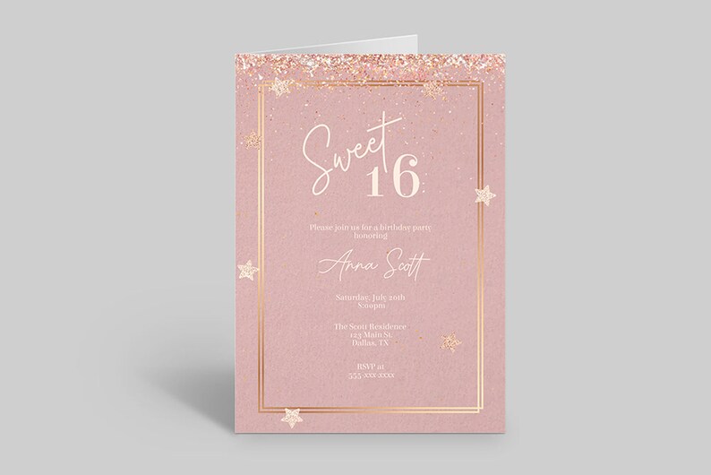 Sweet 16 Invitation Template | Editable Birthday Invite | Rose Gold ...