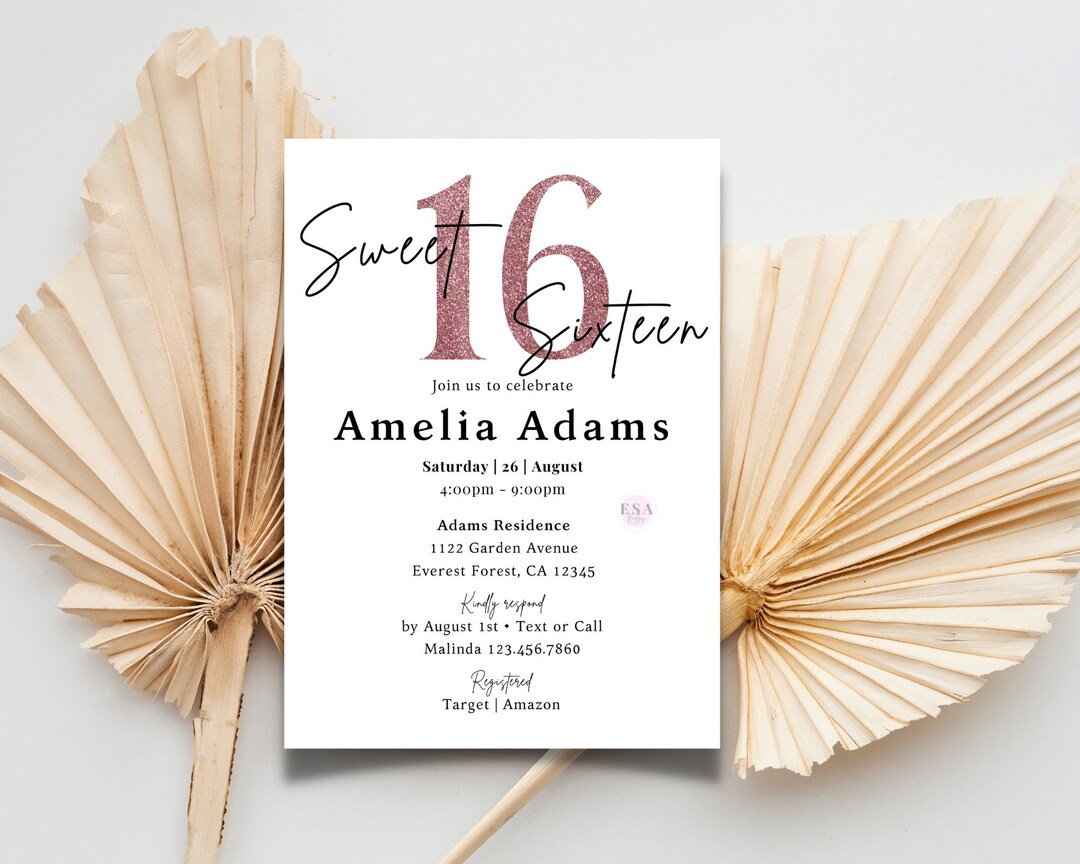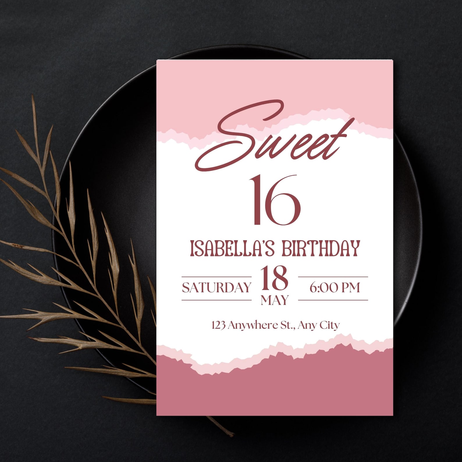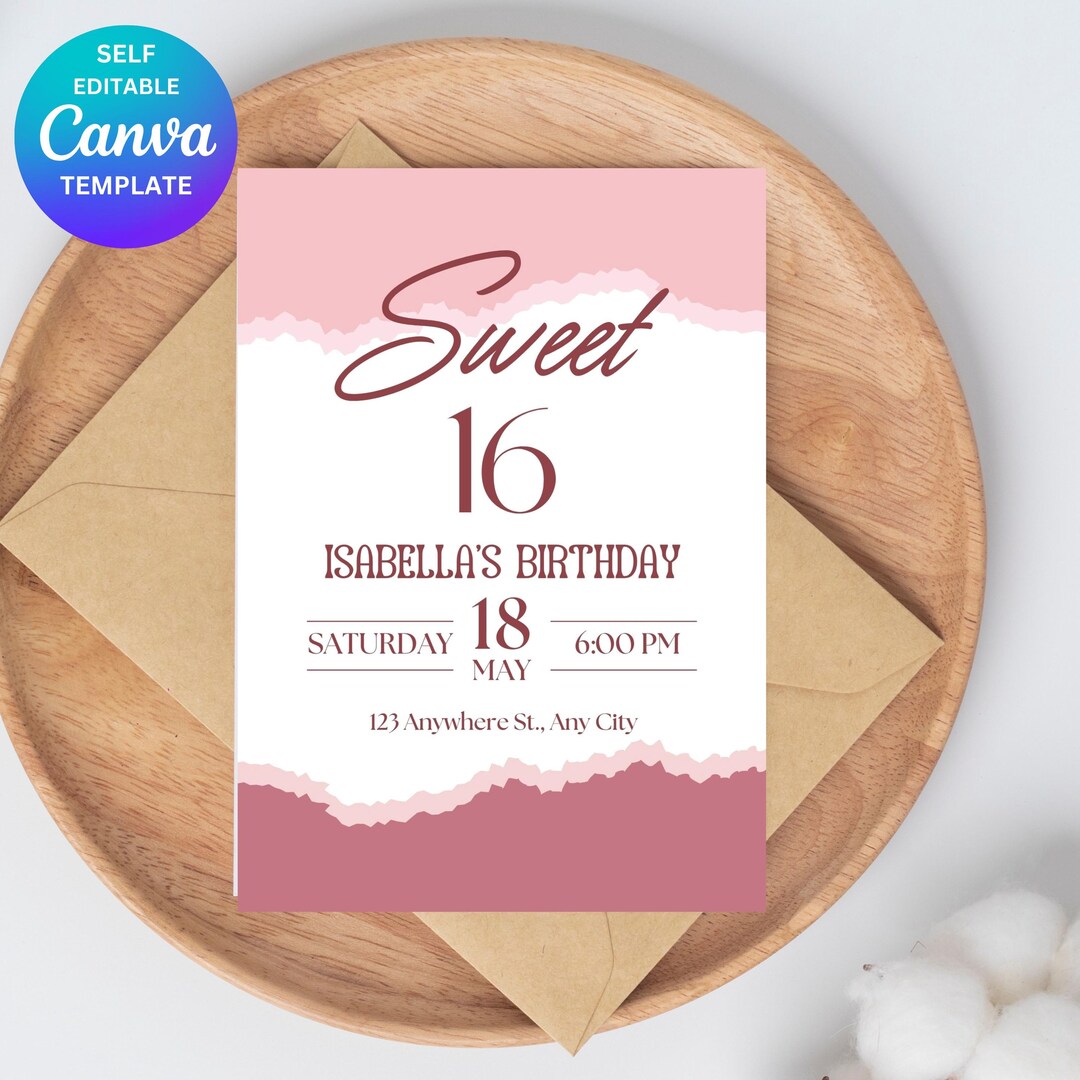 Sweet 16 Birthday Invitation Template, Canva,instant Download,elegant ...