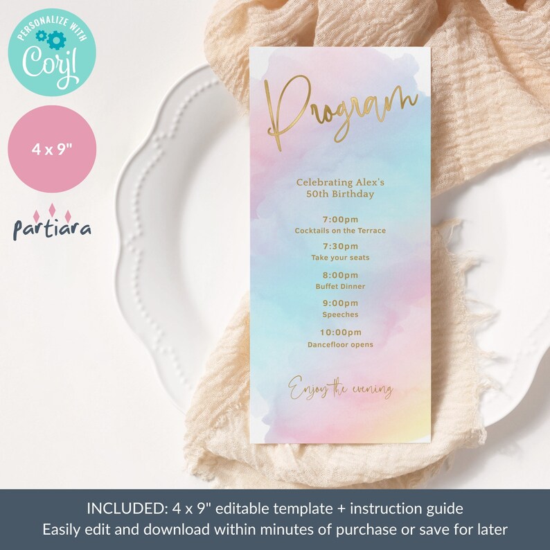 Pastel Sweet 16 Program Cards Rainbow Party Printable, Girls 1st ...