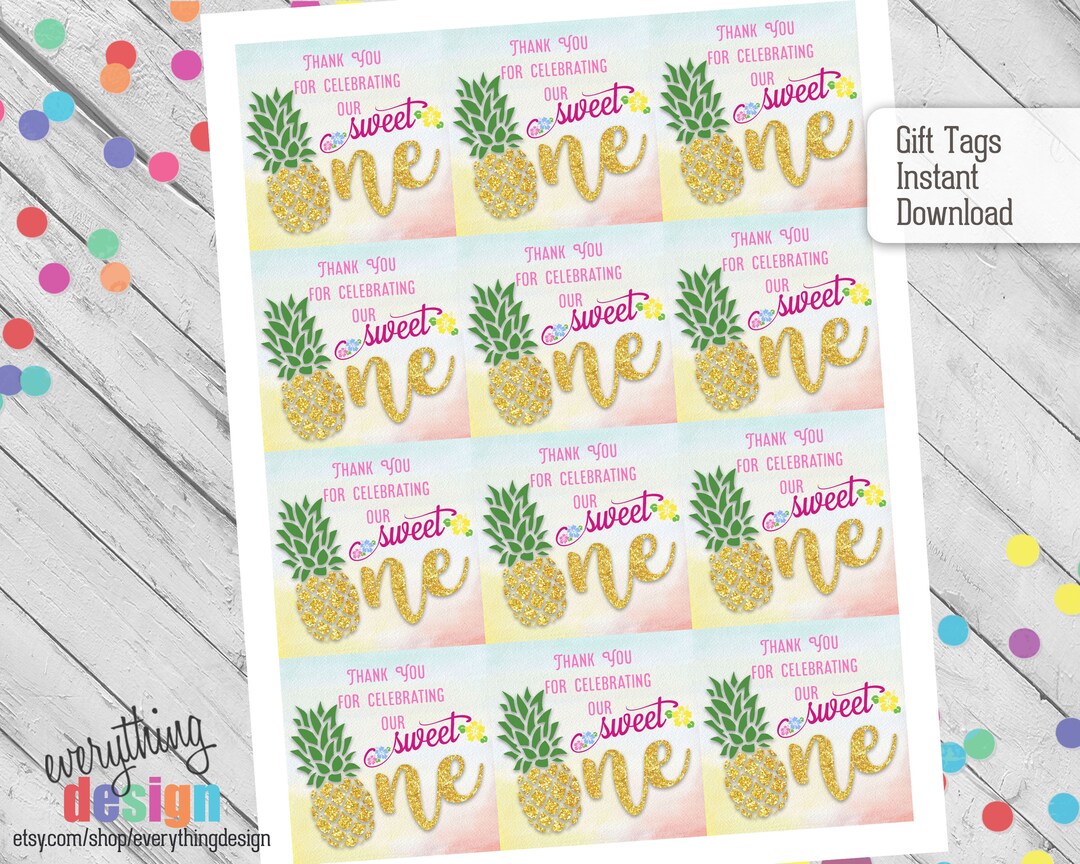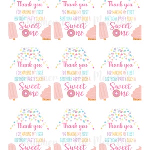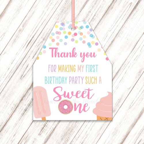 Sweet One Thank You Tags- Instant Download- DIY Party Favor Tags - Etsy