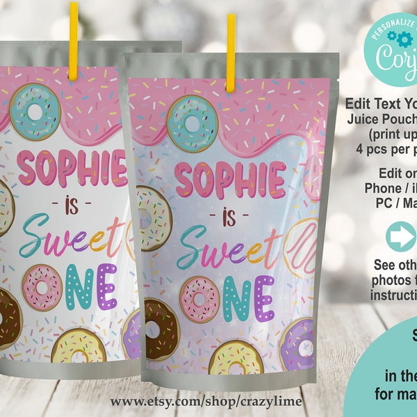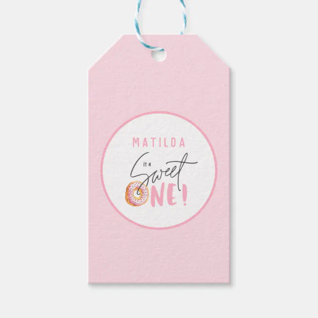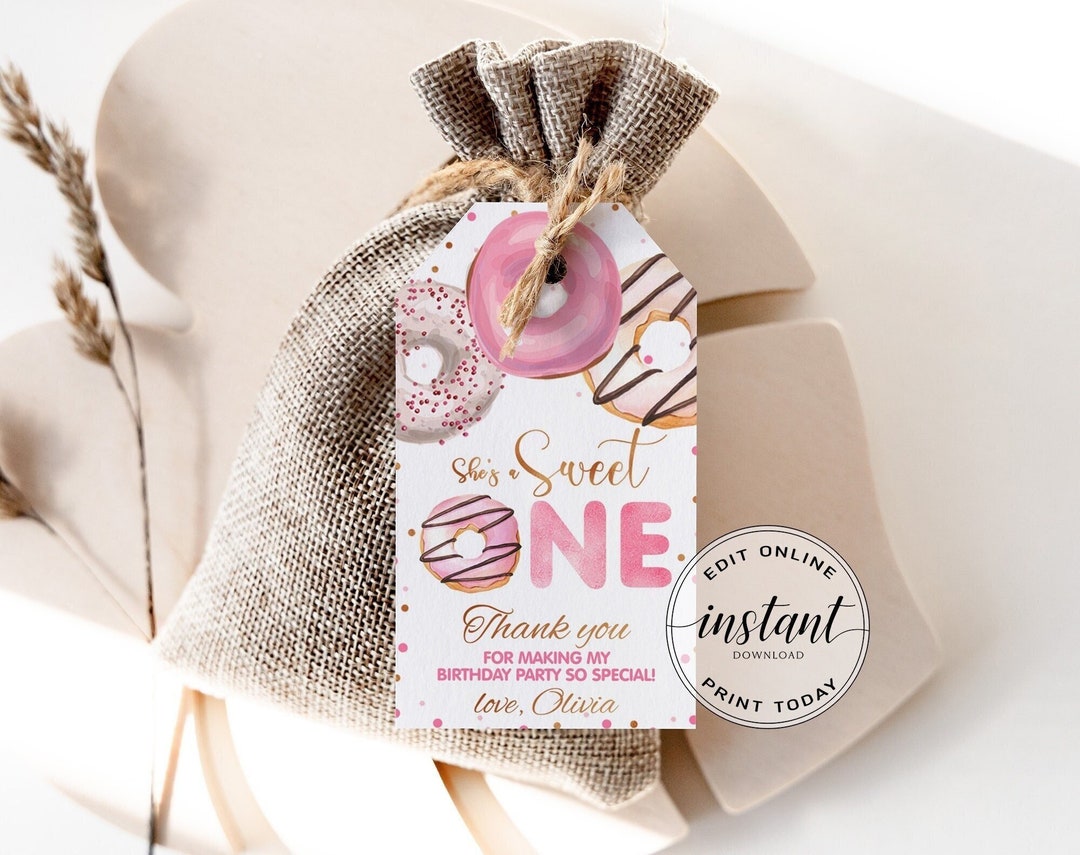 Editable Birthday Favor Tags, Gift Tags Pink Donut, Sweet ONE Printable ...