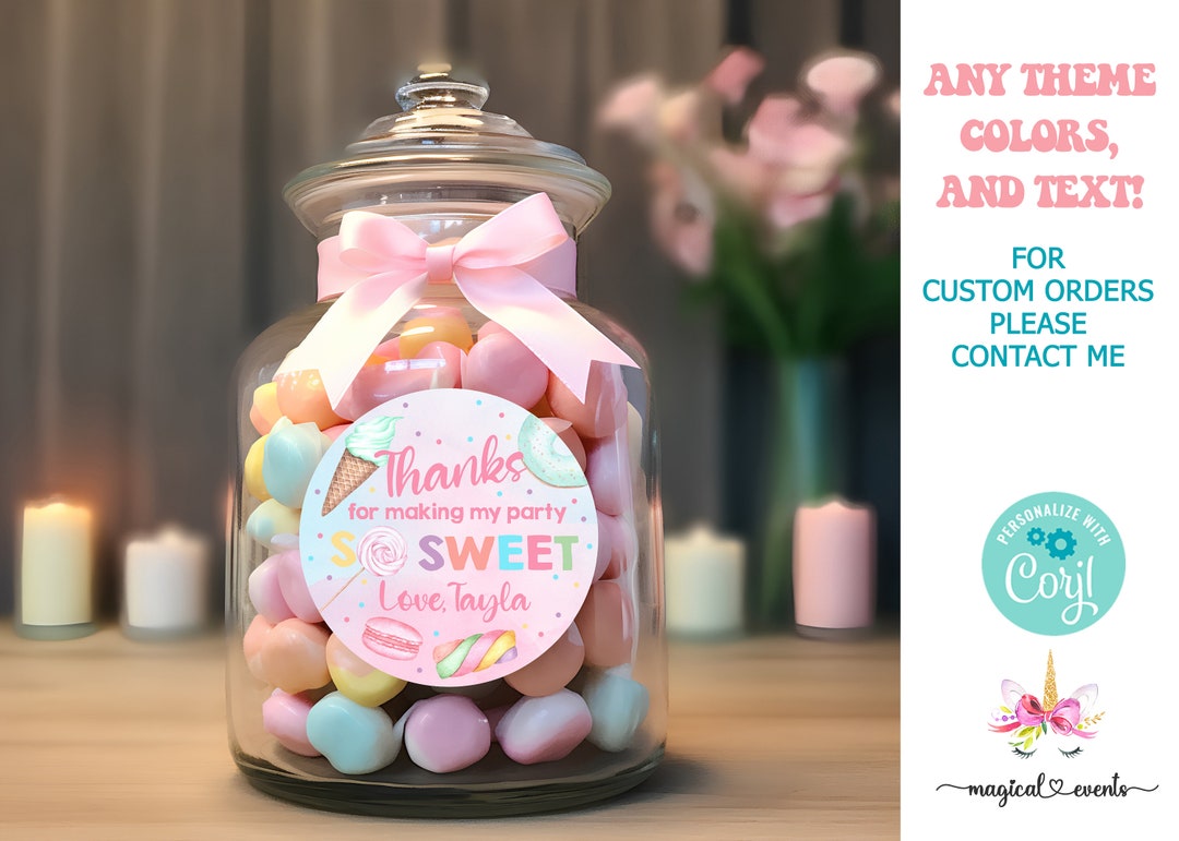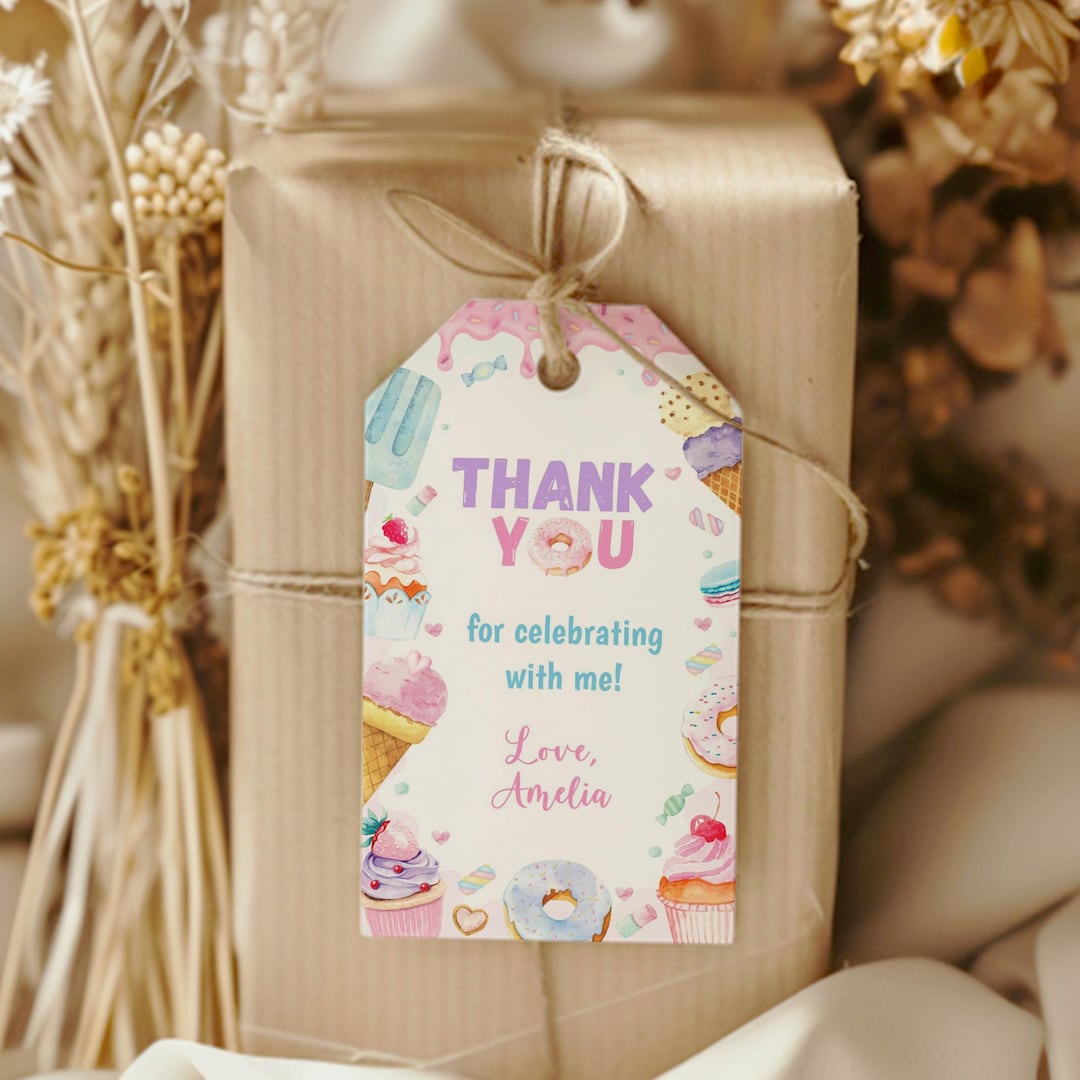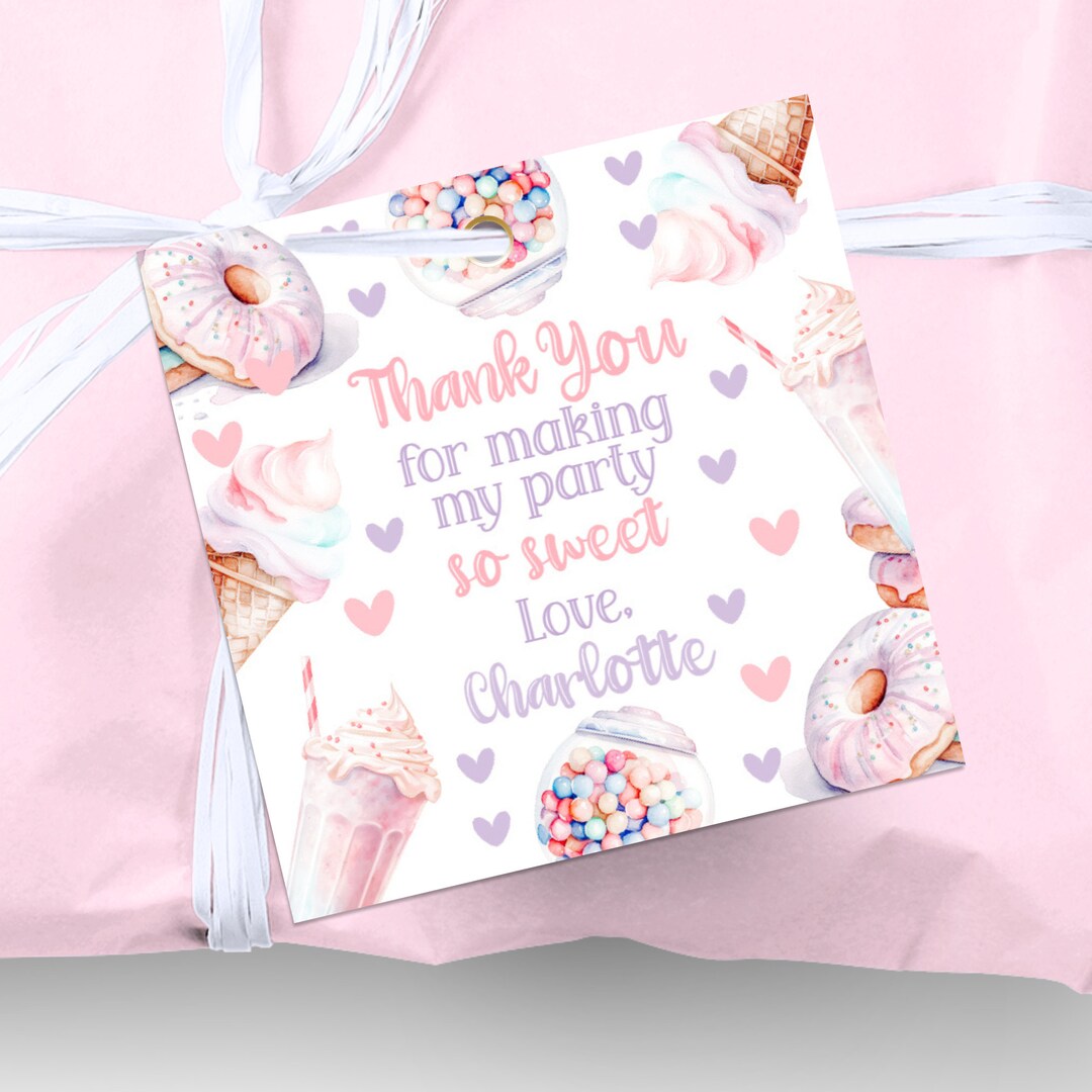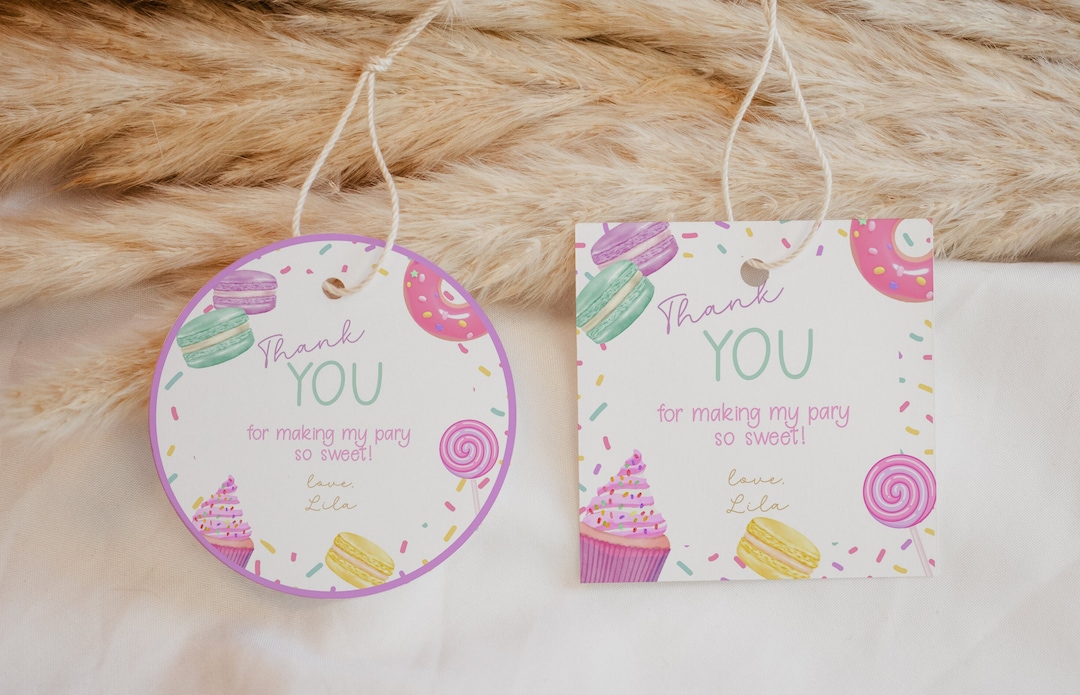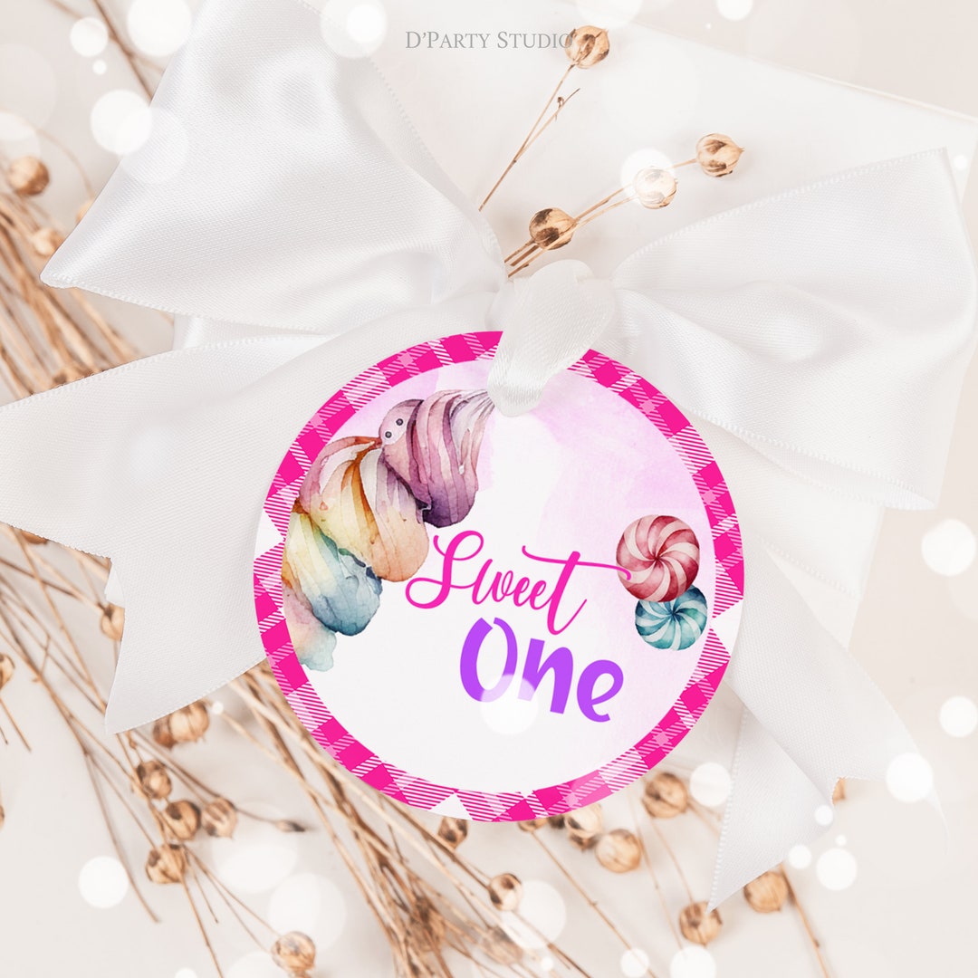 Editable Sweet One Birthday Tags. Candy Birthday Thank You Tags, Sweet ...