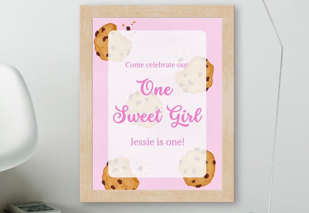 One Sweet One Poster Girl First Birthday Poster Cookie Party Sweets and ...