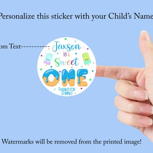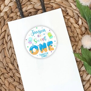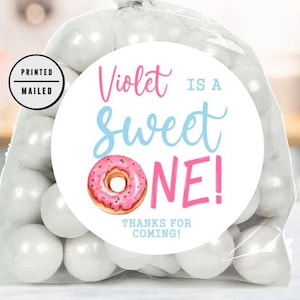 Personalized Donut Birthday Stickers, Sweet ONE Birthday Party Favor ...