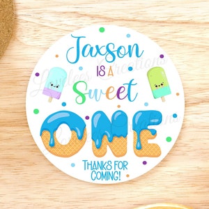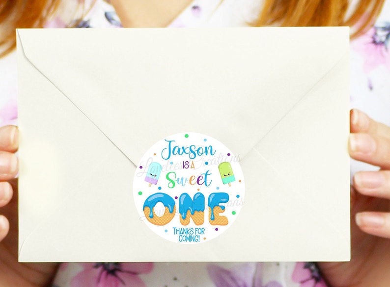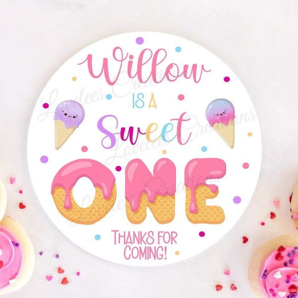 Sweet One Birthday Thank You Stickers | Ice Cream Party Favor Labels ...