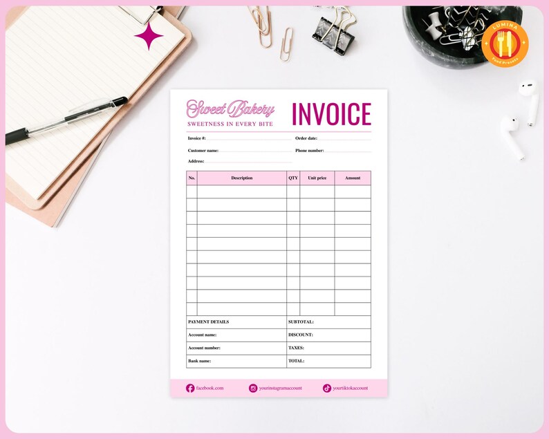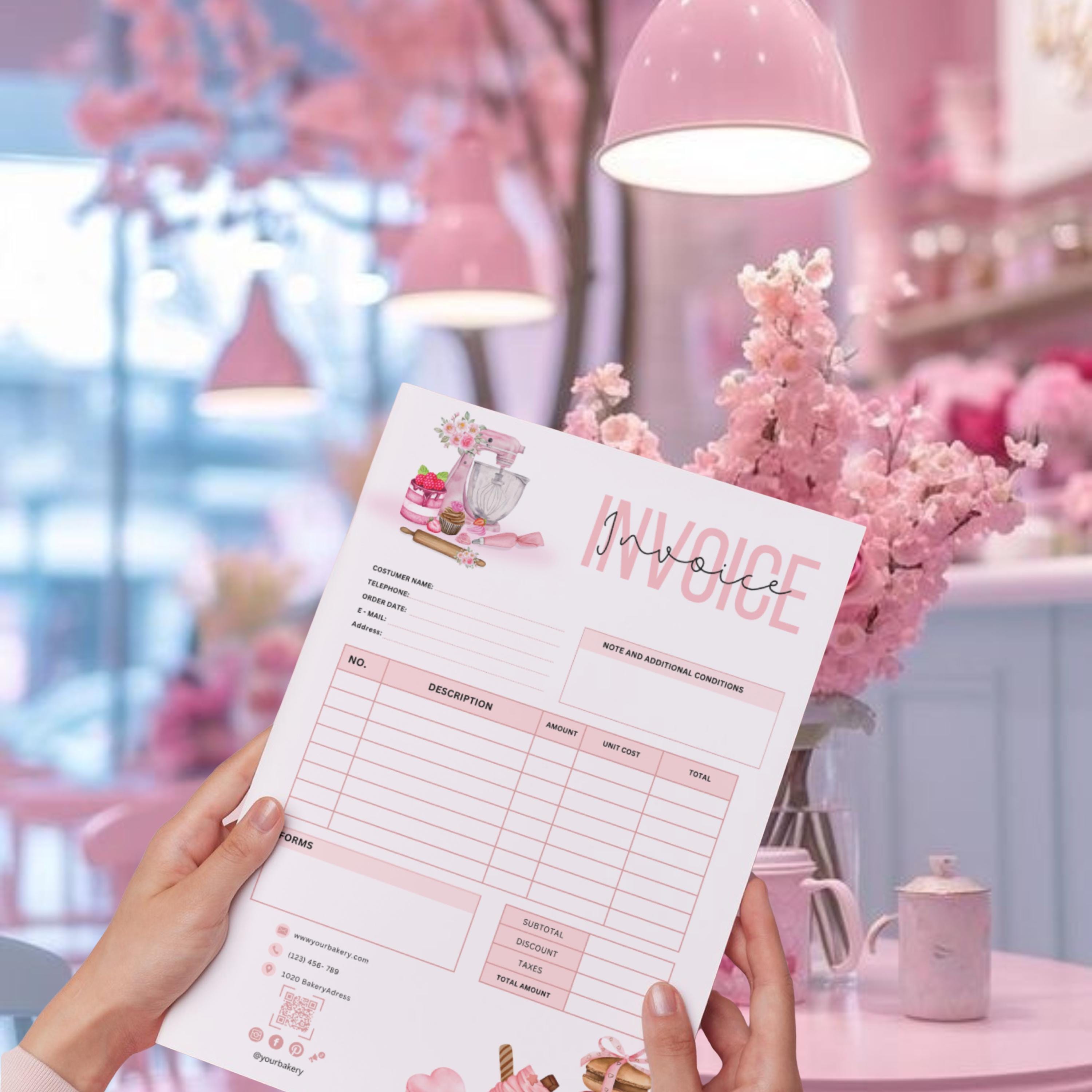 Pink Bakery Invoice Template Converts to Word File Instant | Etsy