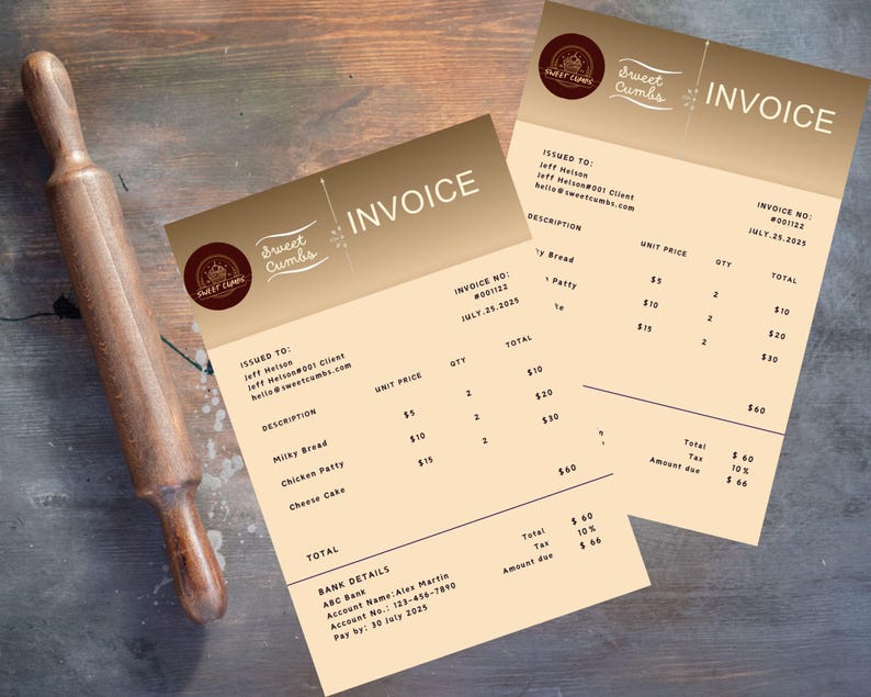 Invoice Template for Bakery Brown Invoice Receipt for Baker Custom ...