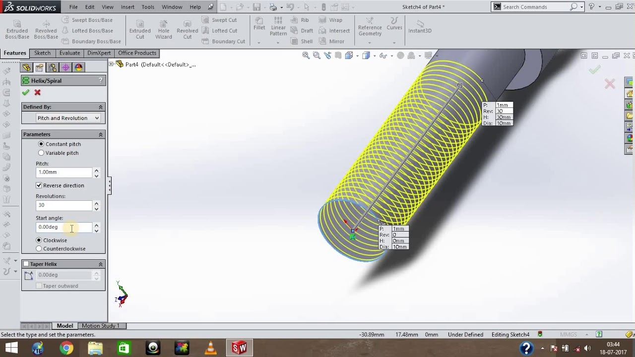 SolidWorks Tutorial N°9 - M10 Bolt Using Helix/Spiral and Swept Cut ...